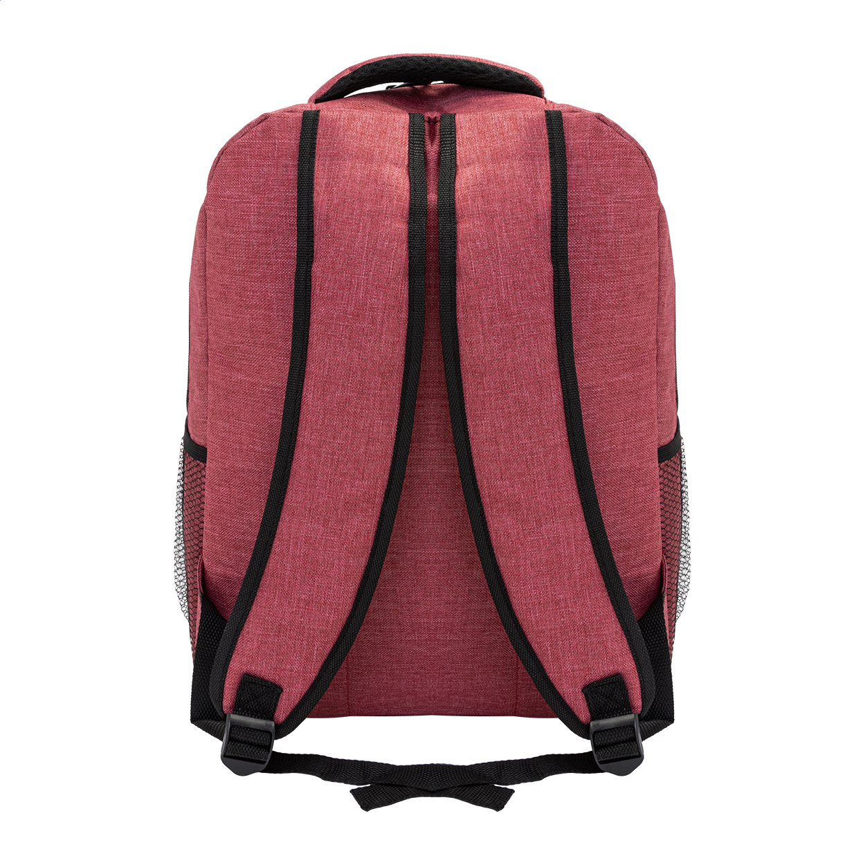 Batoh s přihrádkami na zip, polstrovanými zády, ramenními popruhy a přihrádkou na laptop (až 15 palců). Materiál 600D polyester.