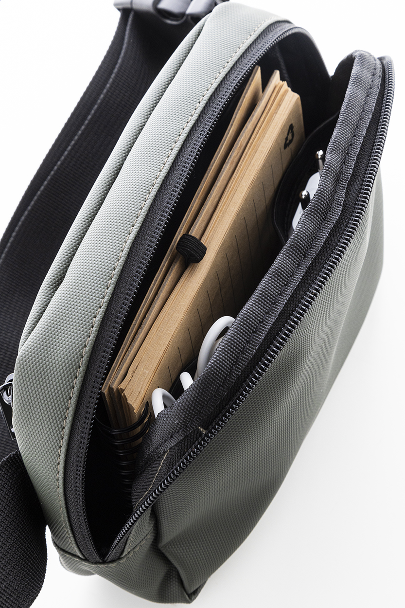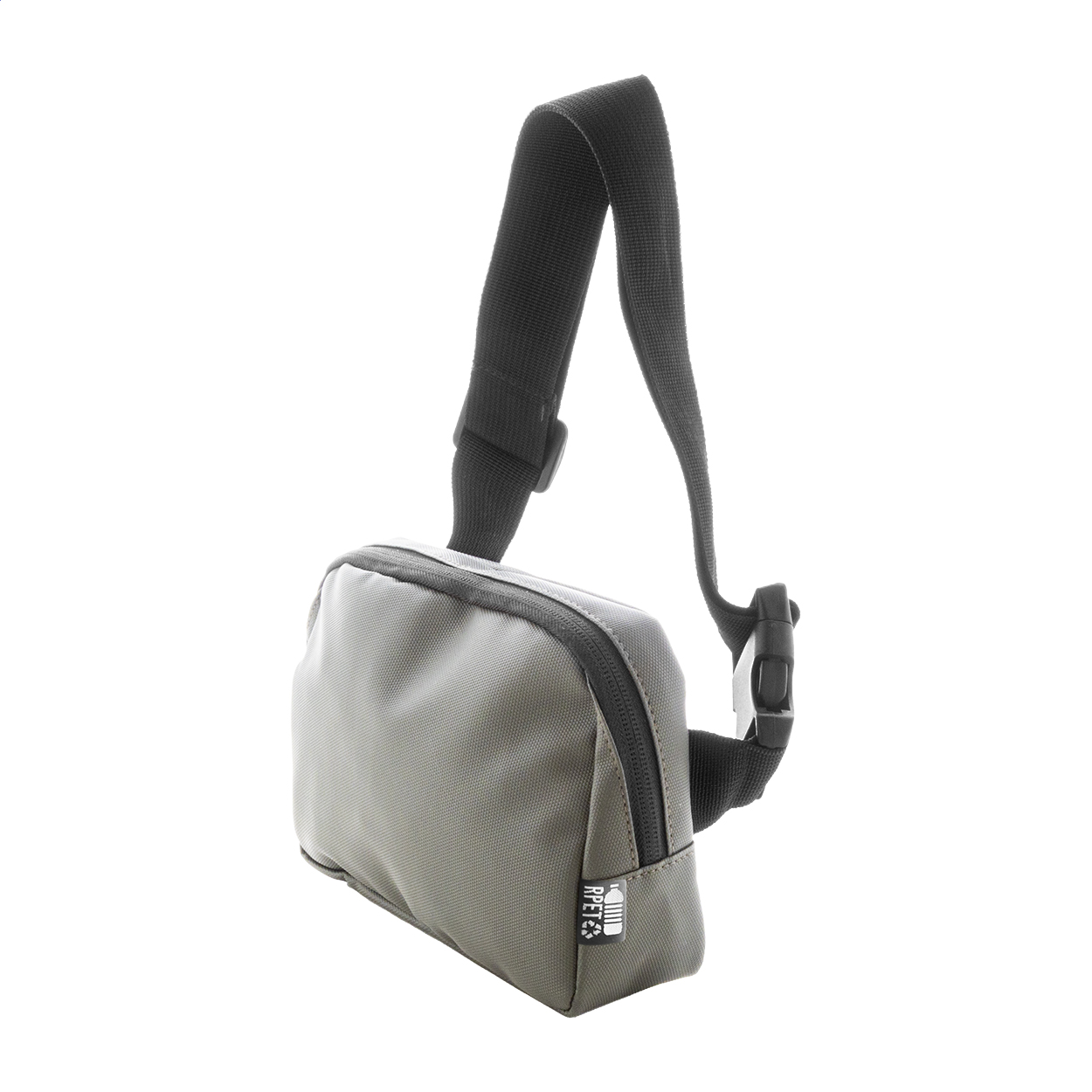 Vodotěsná RPET ledvinka se 2 přihrádkami na zip, síťovanými vnitřními kapsami s organizérem a nastavitelným popruhem. Polyester 600D RPET potažený PU, s výrazným štítkem RPET.