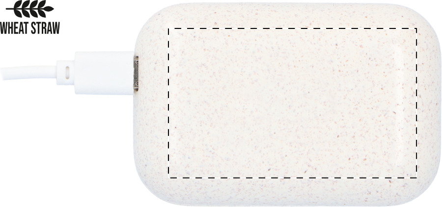 Béžová bezdrátová sluchátka spojují pokročilé technologie s ohledem na životní prostředí využitím plastu s příměsí pšeničné slámy. Ergonomický tvar zajišťuje stabilitu v uších a pohodlí i při dlouhém poslechu hudby nebo podcastů během cestování.