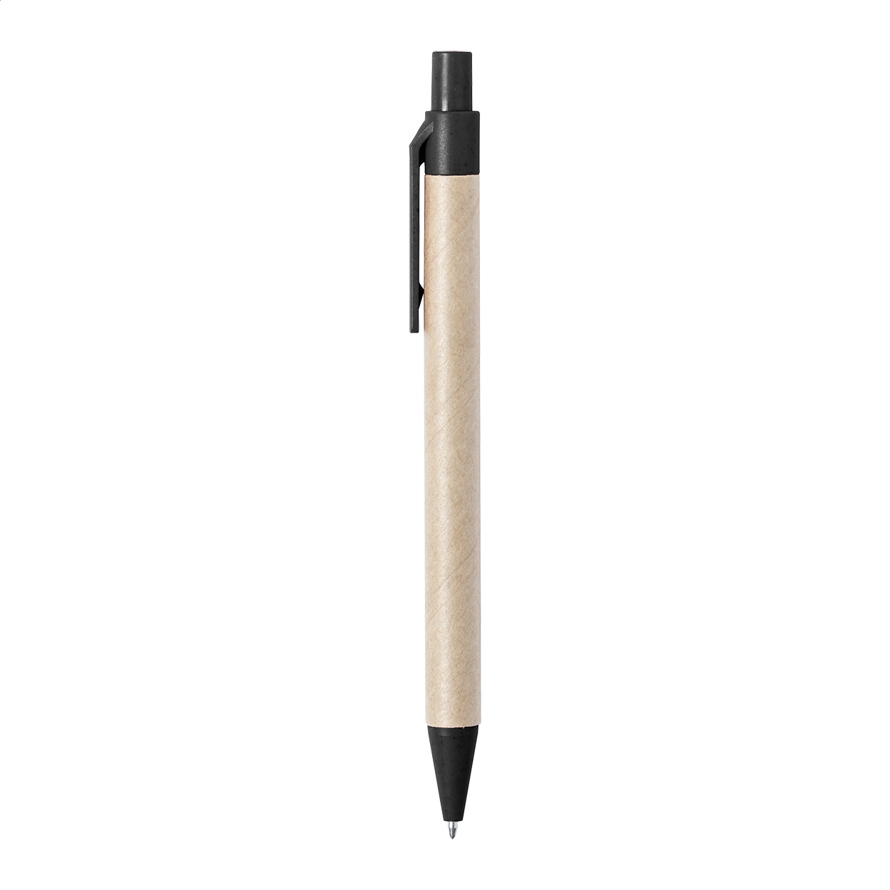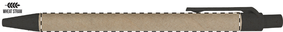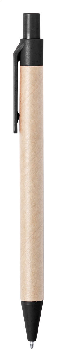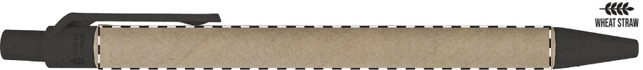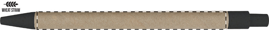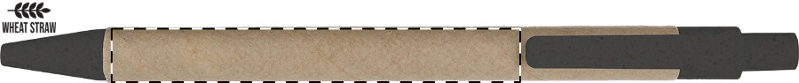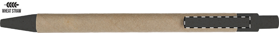 Kuličkové pero z recyklovaného papíru s částmi z plastu a pšeničné slámy. Mechanismus: tlačítkový. Certifikace Push action.