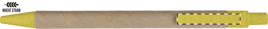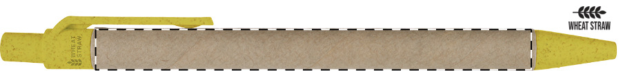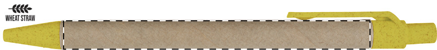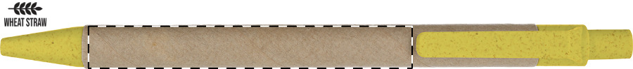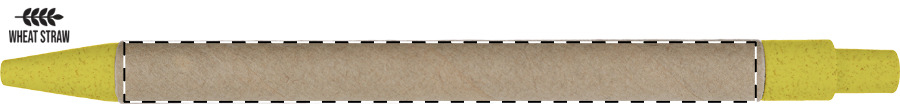 Kuličkové pero z recyklovaného papíru s částmi z plastu a pšeničné slámy. Mechanismus: tlačítkový. Certifikace Push action.
