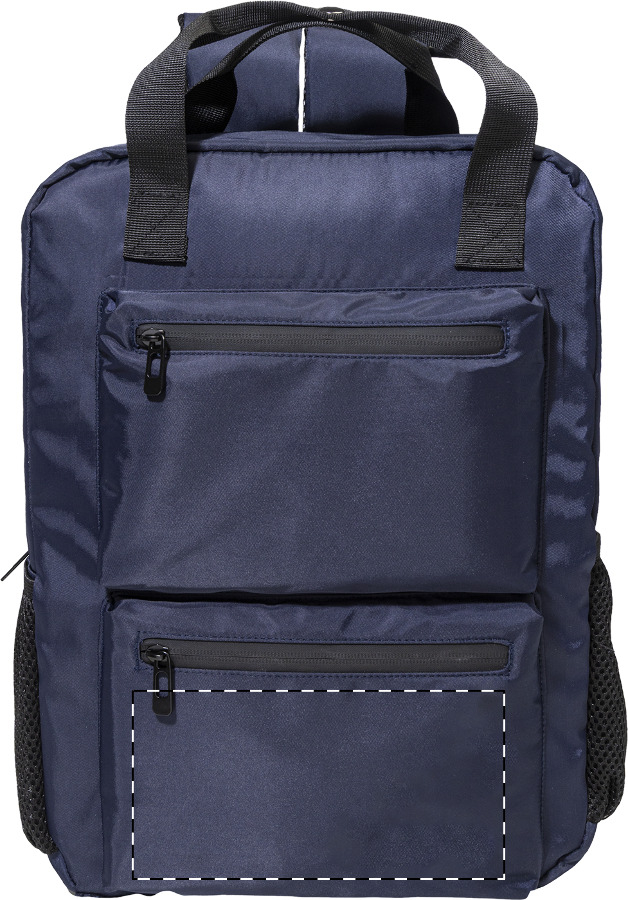 Batoh z RPET s přihrádkou na zip, 2 předními kapsami na zip, polstrovanou přihrádkou na notebook (15") a bočními síťovanými kapsami. S polstrovanými zády a ramenními popruhy, kapsou proti krádeži a popruhem na kolečkách. RPET keprový polyester s výrazným štítkem RPET.