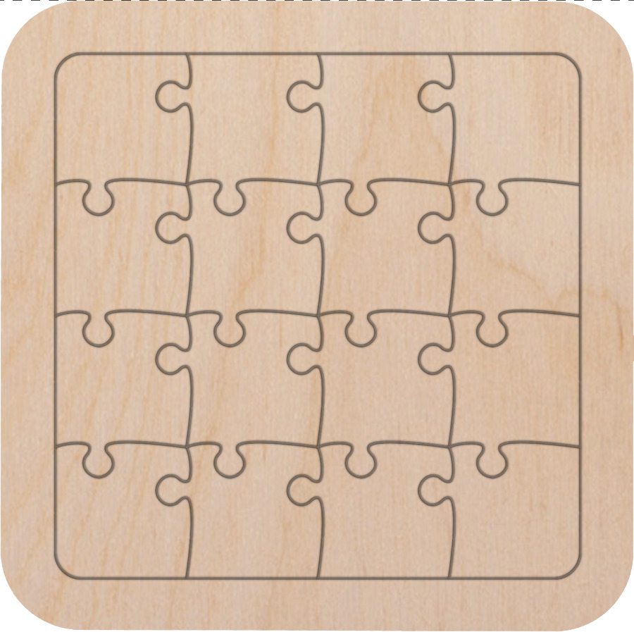 Na zakázku vyrobená 16dílná sada puzzle z březové překližky s barevnou grafikou. Cena zahrnuje UV LED tisk, nezahrnuje tiskovou přípravu. Min. mn.: 50 ks.