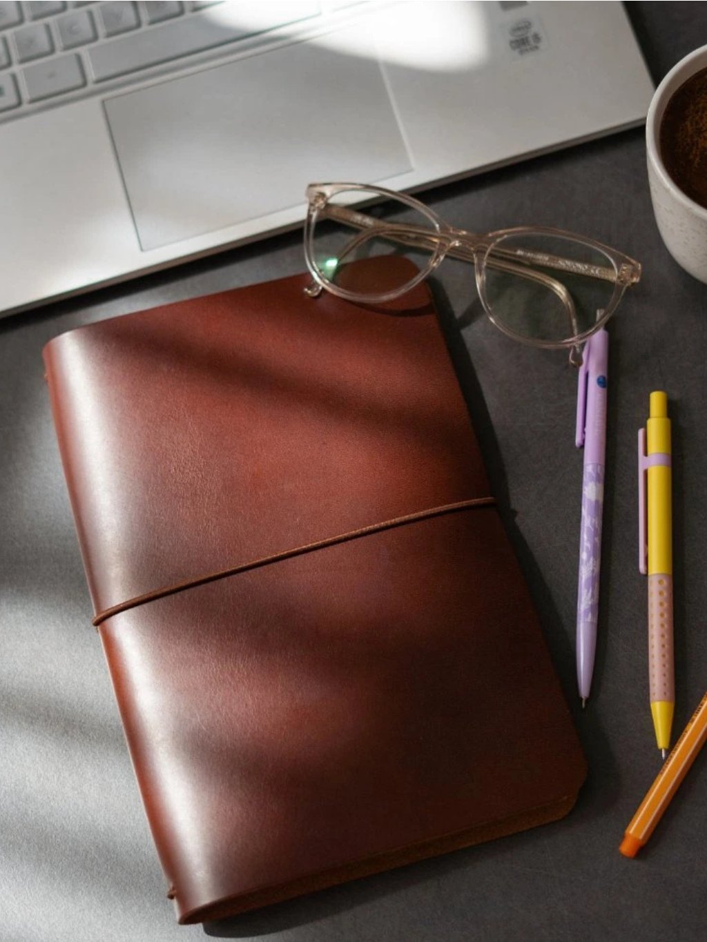 Hledáte elegantní a zároveň maximálně funkční zápisník, který se vám plně přizpůsobí? Kožený zápisník Midori kombinuje prémiové materiály s modulárním designem, ideálním pro organizaci vašich pracovních i školních poznámek. Desky jsou vyrobeny z kvalitní a odolné hovězí usně, která nejen chrání vaše zápisy, ale časem získává i jedinečnou patinu. Pevná gumička zajišťuje, že vše zůstane bezpečně na svém místě. Hlavní předností tohoto zápisníku je jeho flexibilita. Díky systému vnitřních gumiček můžete snadno vkládat, vyjímat a kombinovat různé bloky papíru. V základním balení od nás obdržíte hned dva typy bloků, které pokryjí všechny vaše potřeby.