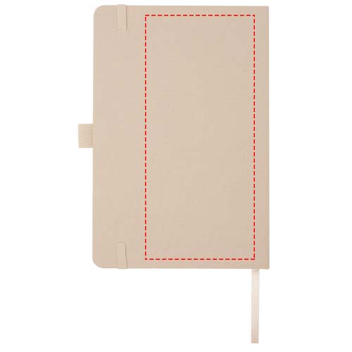 Zápisník formátu A5 s obálkou z látky s RPET. Obsahuje 80 listů linkovaného recyklovaného papíru 70 g/m2 se stuhovou záložkou a očkem na pero.