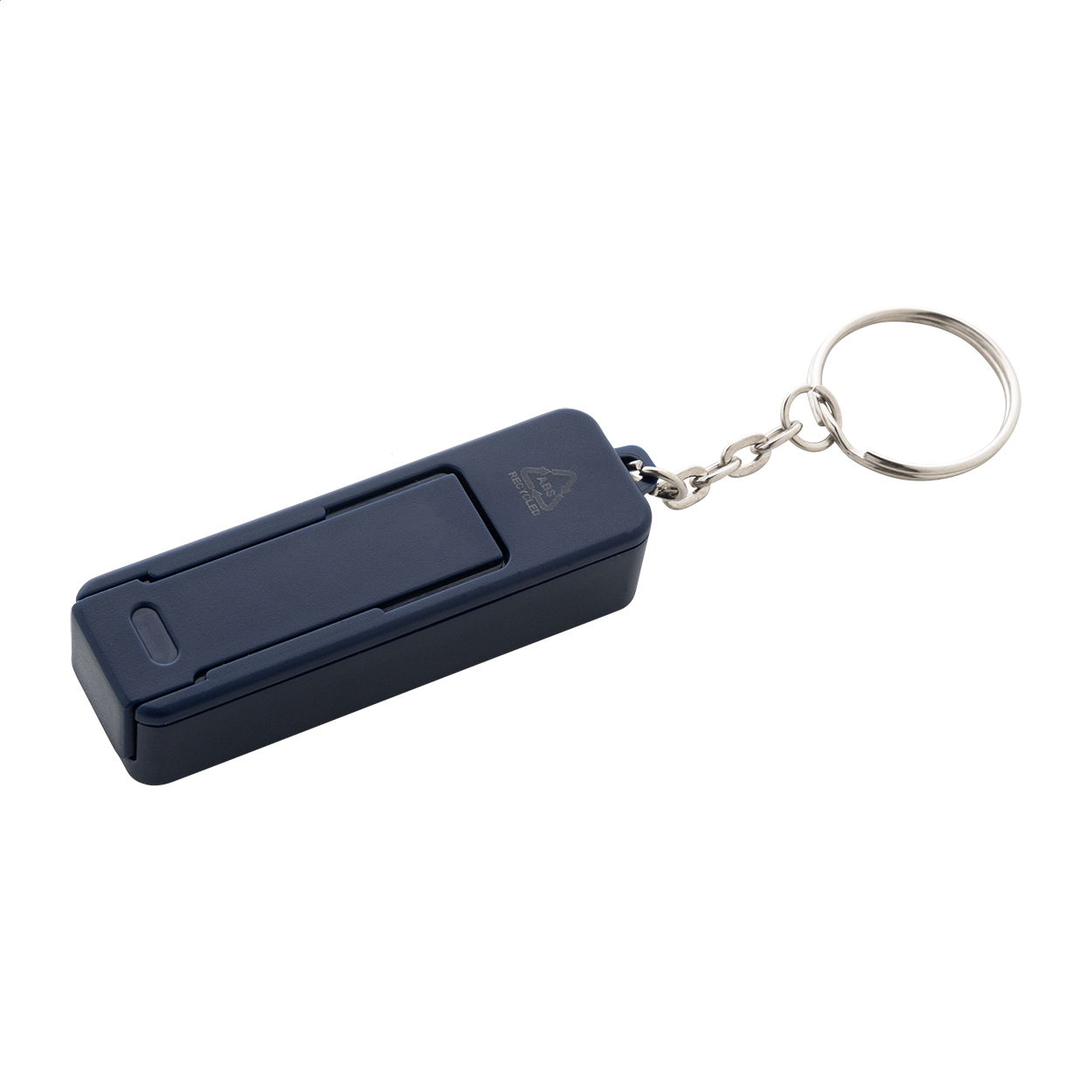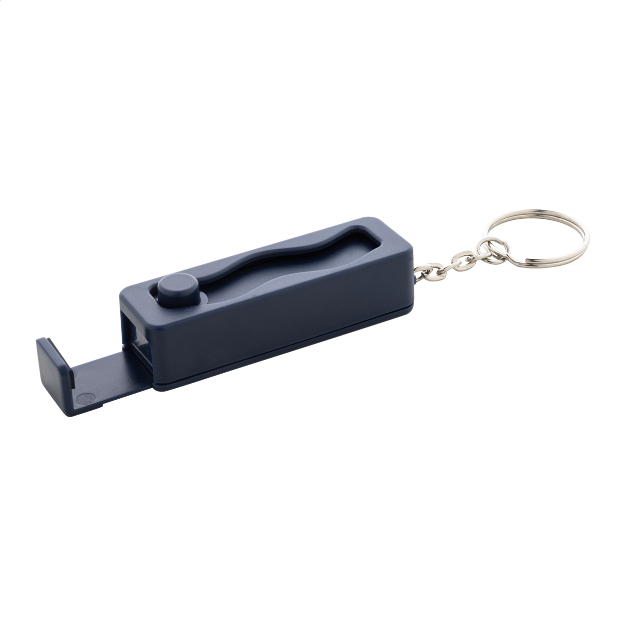 Antistresový přívěšek na klíče fidget z recyklovaného ABS materiálu s integrovaným držákem na mobil a kovovým kroužkem.