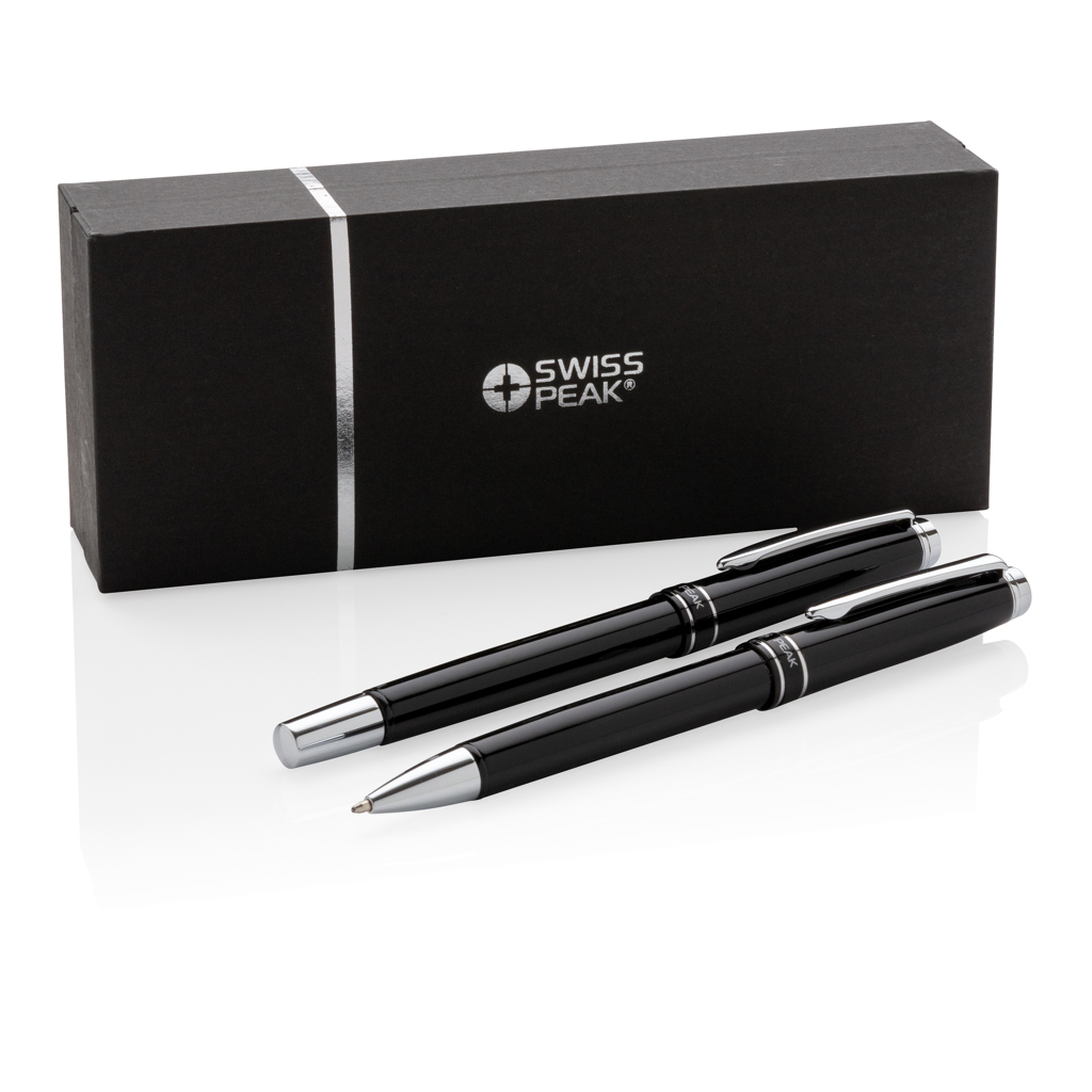 Značková sada kuličkového pera a rolleru Swiss Peak ASHCAMP s německou inkoustovou náplní - černá